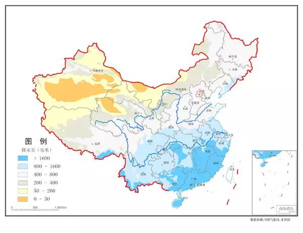 中國的氣候大部分是溫帶季風氣候,隨著緯度的不同而氣溫和降水都會變化。年降水量總體上說,北方少,南方多,東部多于西部。中國降水最多的地區多集中在了東南部,特別是臺灣島的火燒遼,年平均降水量達6000毫米以上;而我國西北的大沙漠降水十分稀少,有些地區年平均降水量只有不到10毫米。